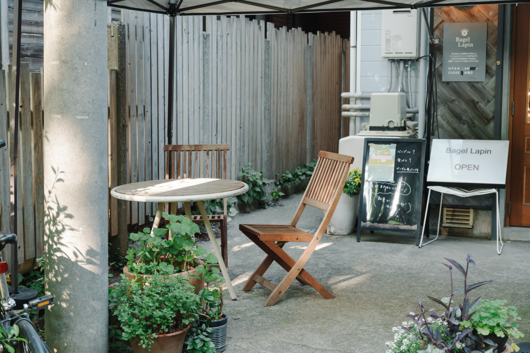 撮って出しパートでも軽く触れましたが、ほどよいボケ感のおかげで木のイスが後ろの看板と比べて浮き上がっているような印象を受けます。