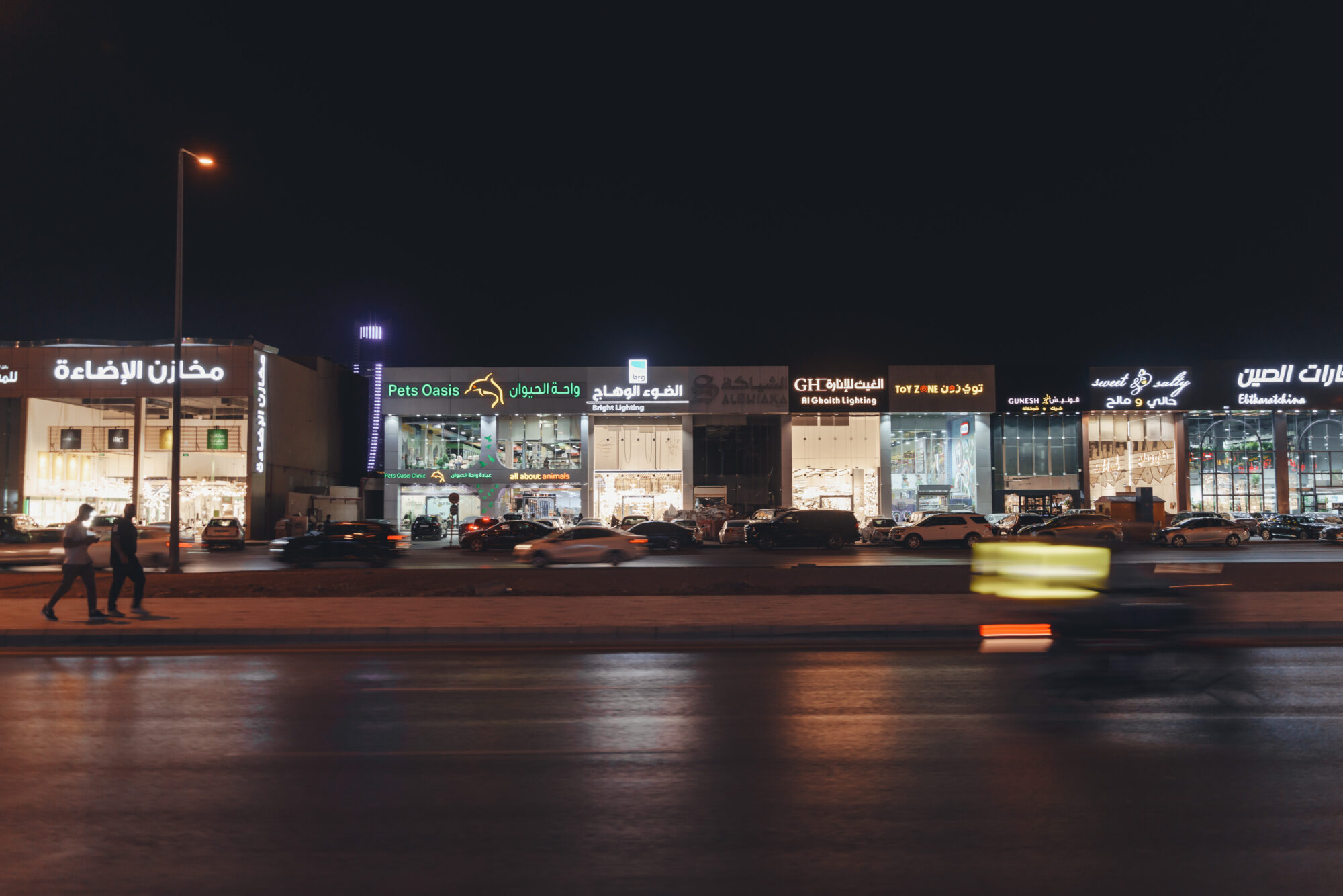 もちろんネオンライトもビカビカで、まだリヤドに着いて数時間なのにすでに異国の雰囲気を感じてテンションが高まります。