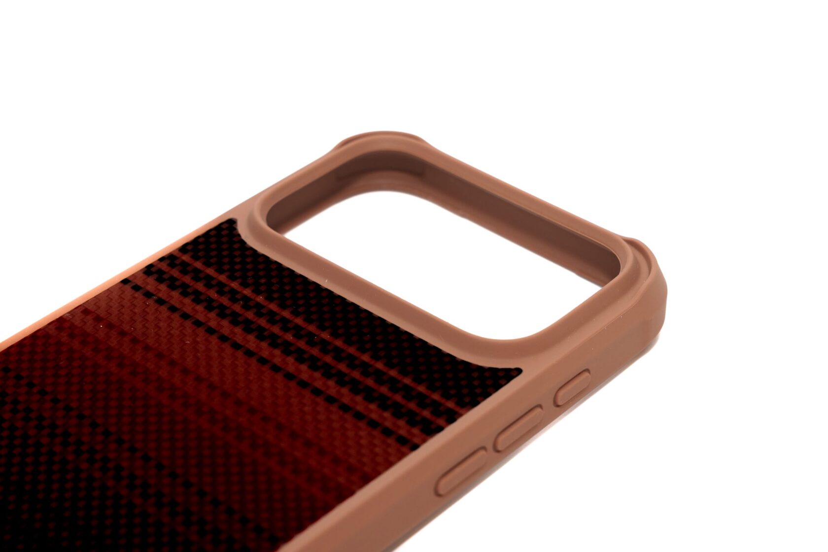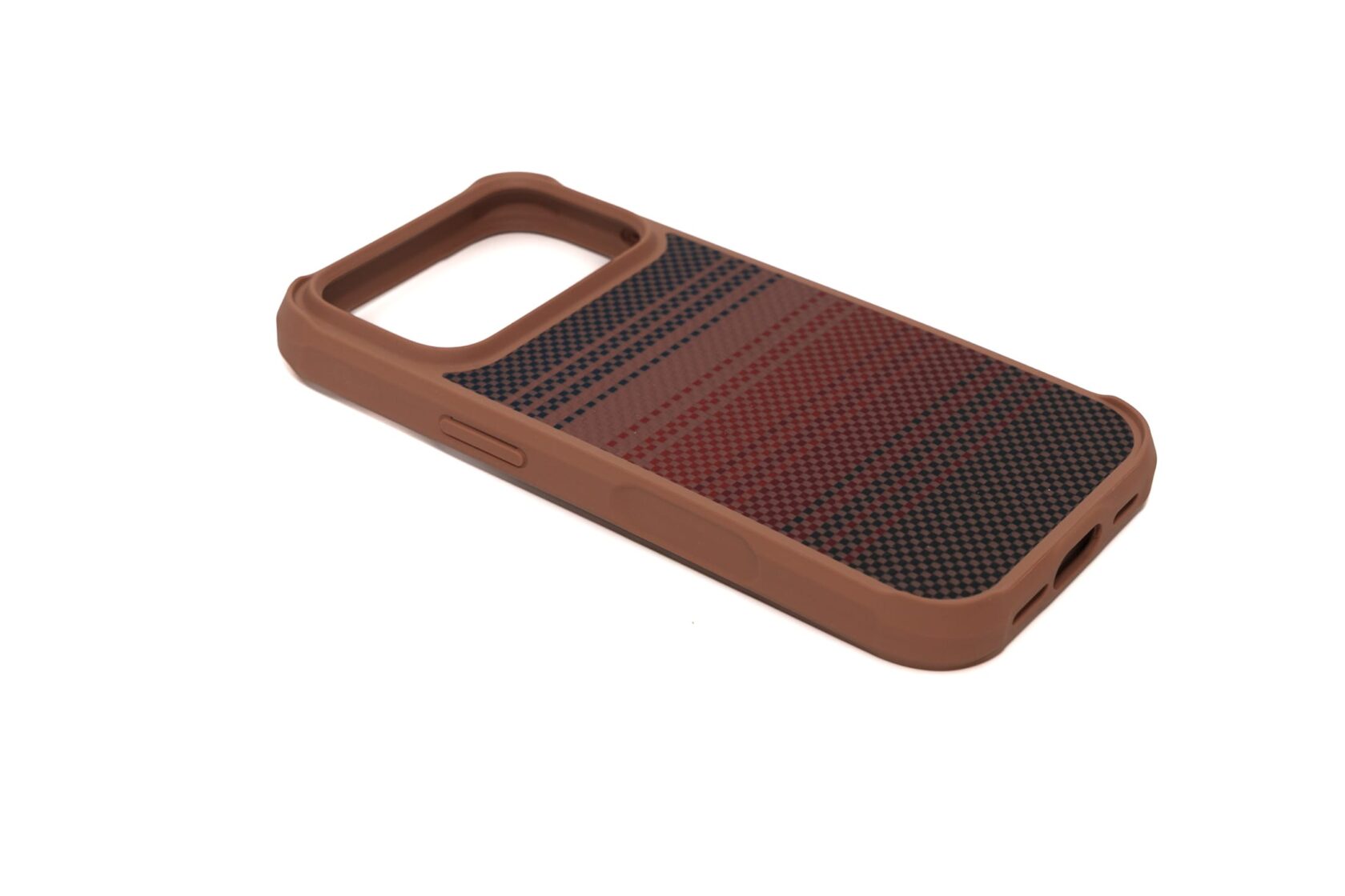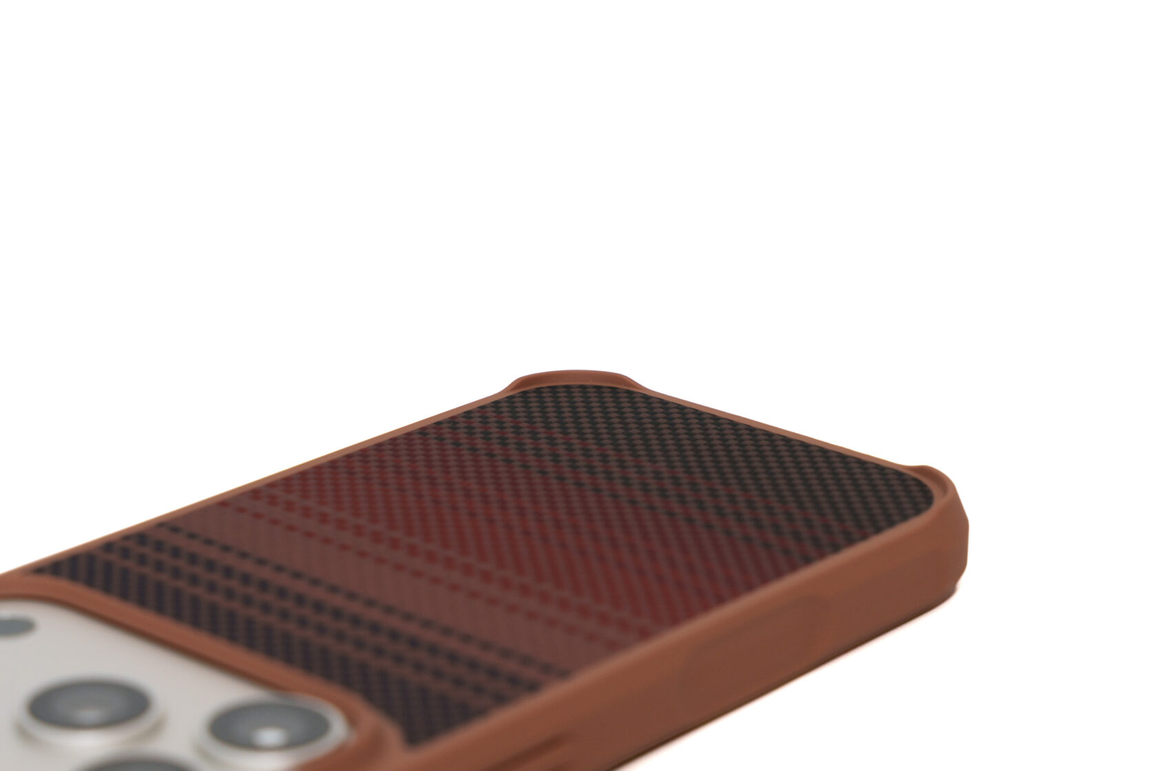 このケースの特徴はなんといっても表面素材で、鯱の皮膚構造に着想を得たという独自開発の「鯱樹脂(Orca Resin)」をアラミド繊維と融合した二層構造を採用しています。