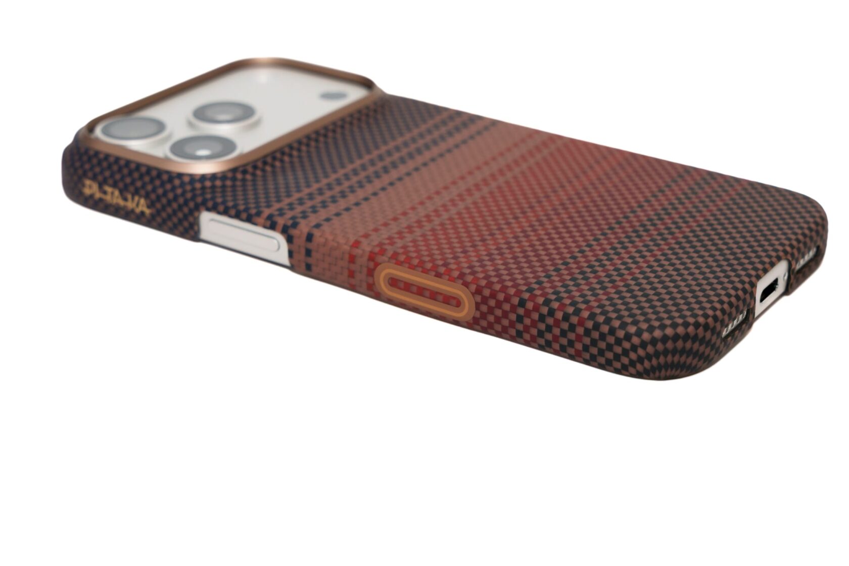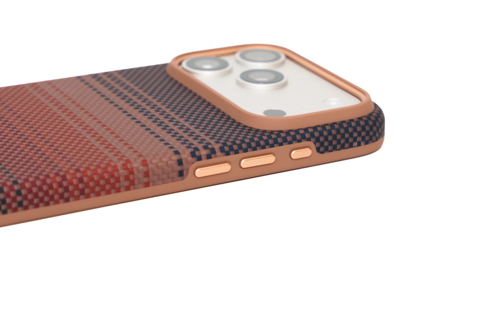 アラミド繊維を贅沢に使ったケースですが、背面のカメラモジュール部分は金属パーツで保護されています。うっかりカメラリングなどが傷ついてしまう心配がないのが良いですよね。