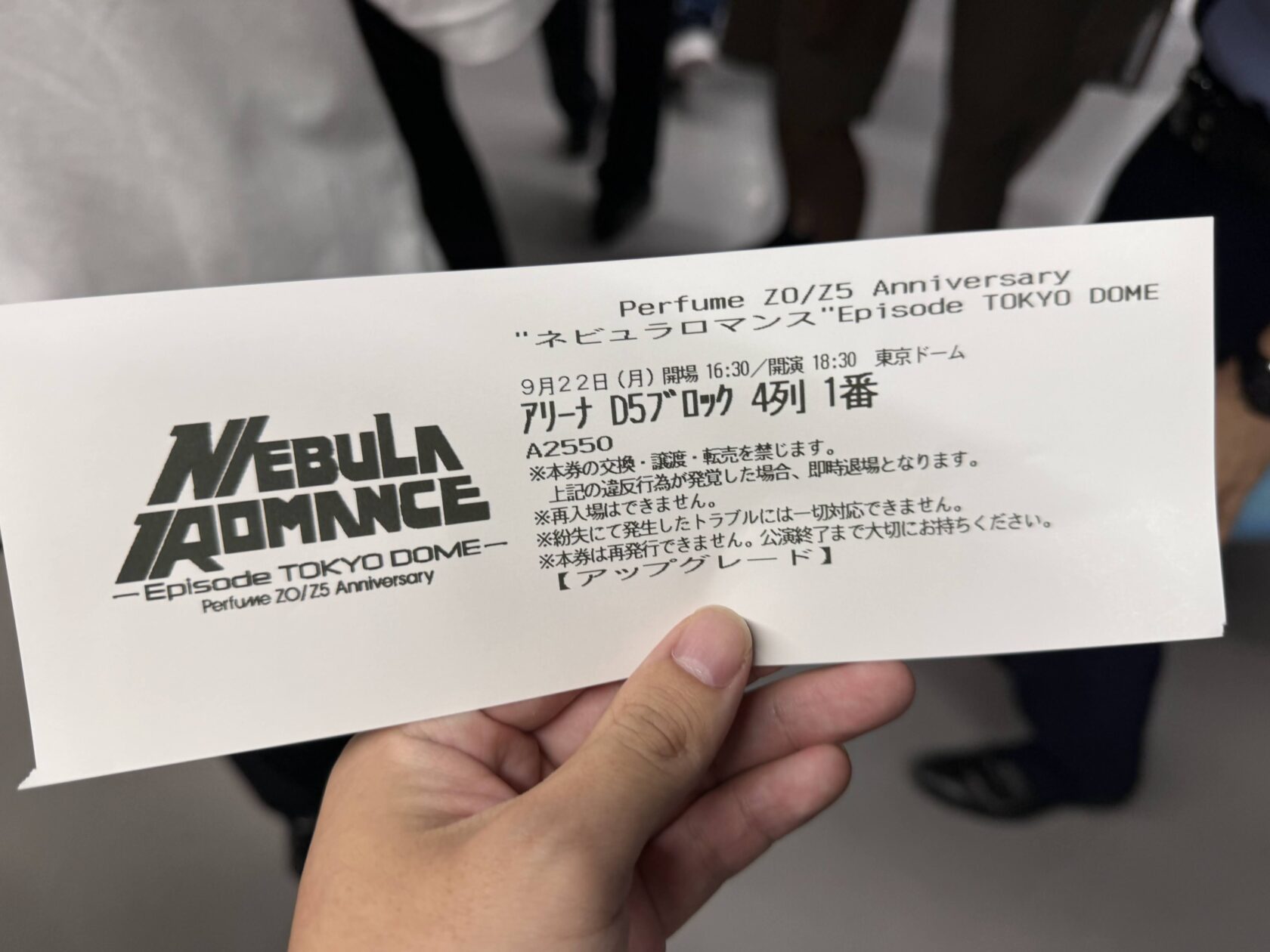 Perfumeをコロナ前から好きな人であれば、ライブ千秋楽が中止になってしまった「あの日」はよく知っていると思いますが、その日から5年後、まさにその「発表された時間」に告知された東京ドーム公演を見逃すわけにはいかず。当然のことながら2日間ともに参加しました。