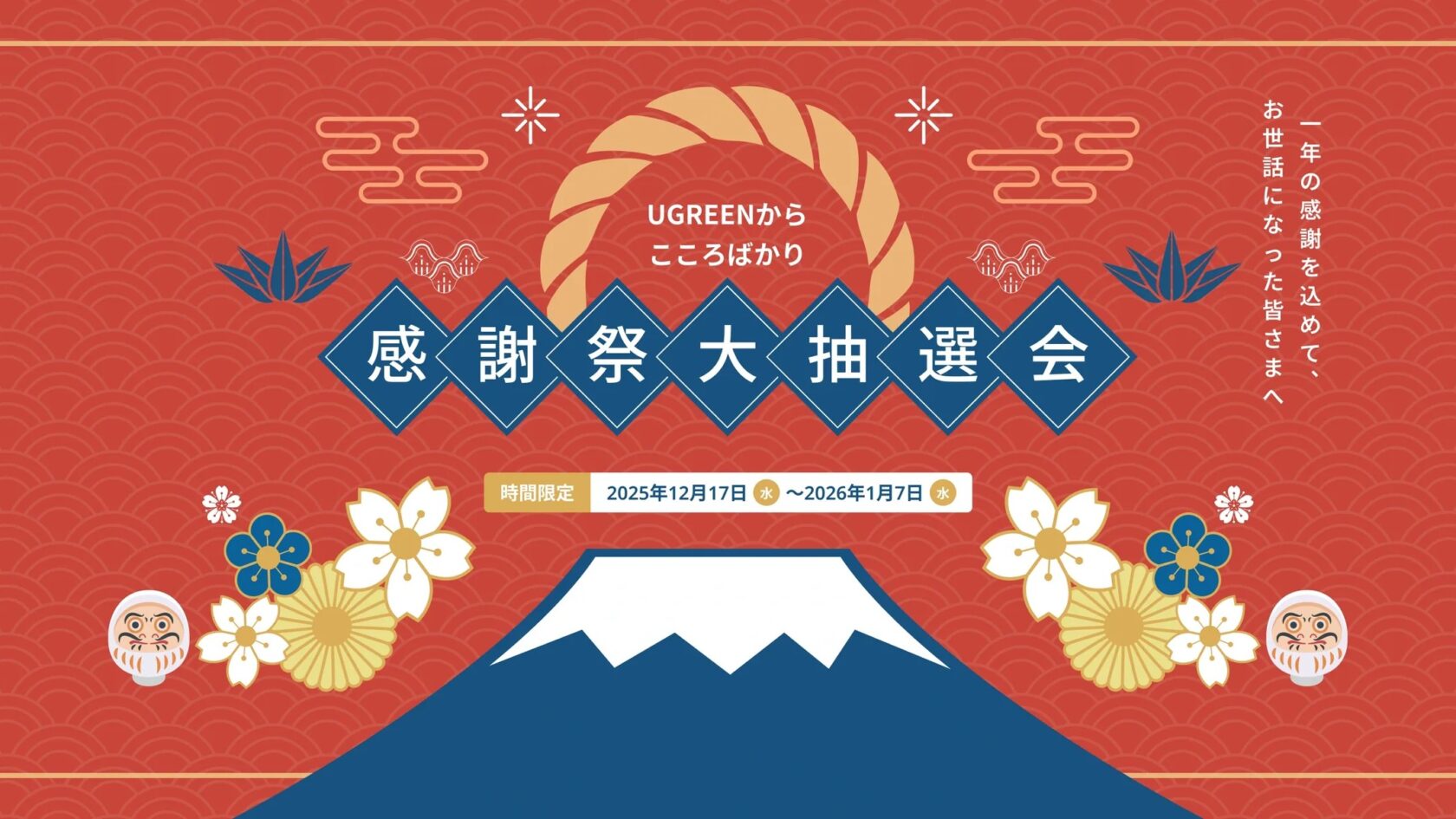 1つ上で紹介した福袋とあわせて、UGREENの公式サイトでは2025年の感謝を込めた「感謝祭大抽選会」も開催中。