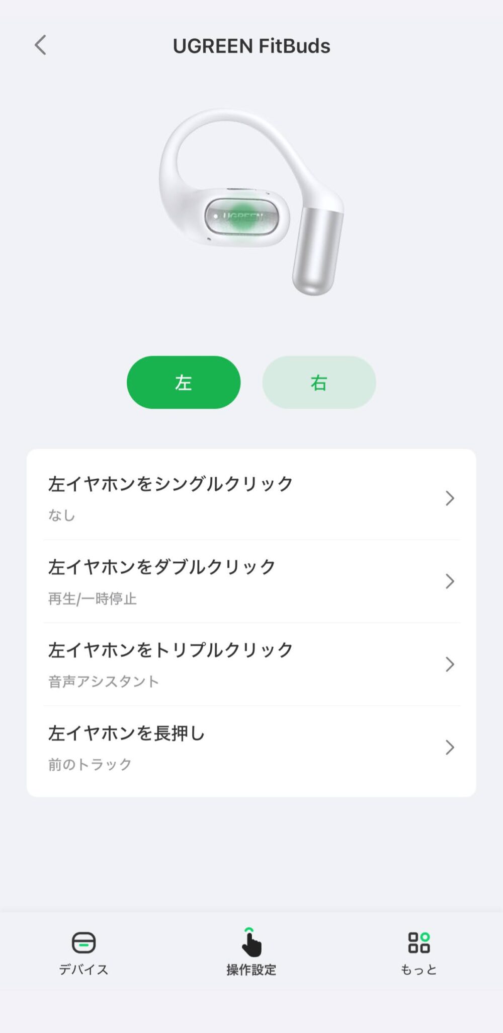 ちなみにこのコントロールは、専用アプリ『UGREEN Connect』から変更が可能。普段別のイヤホンを使っている人などは、それらと操作系を合わせると使いやすいかもしれません。